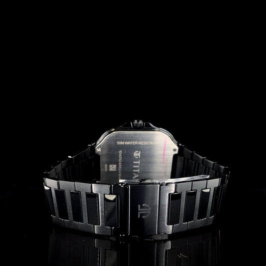 Elevate your style with the Titan Radiant Spark Chronograph Watch. Featuring a sleek black dial, rose gold accents, and a crystal-studded bezel, this timepiece exudes elegance