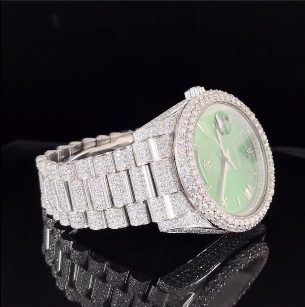 This watch is adorned with Moissanite diamond watch. If you need Certificate we can provide certificate as well. Box and warranty also with provided with the watch